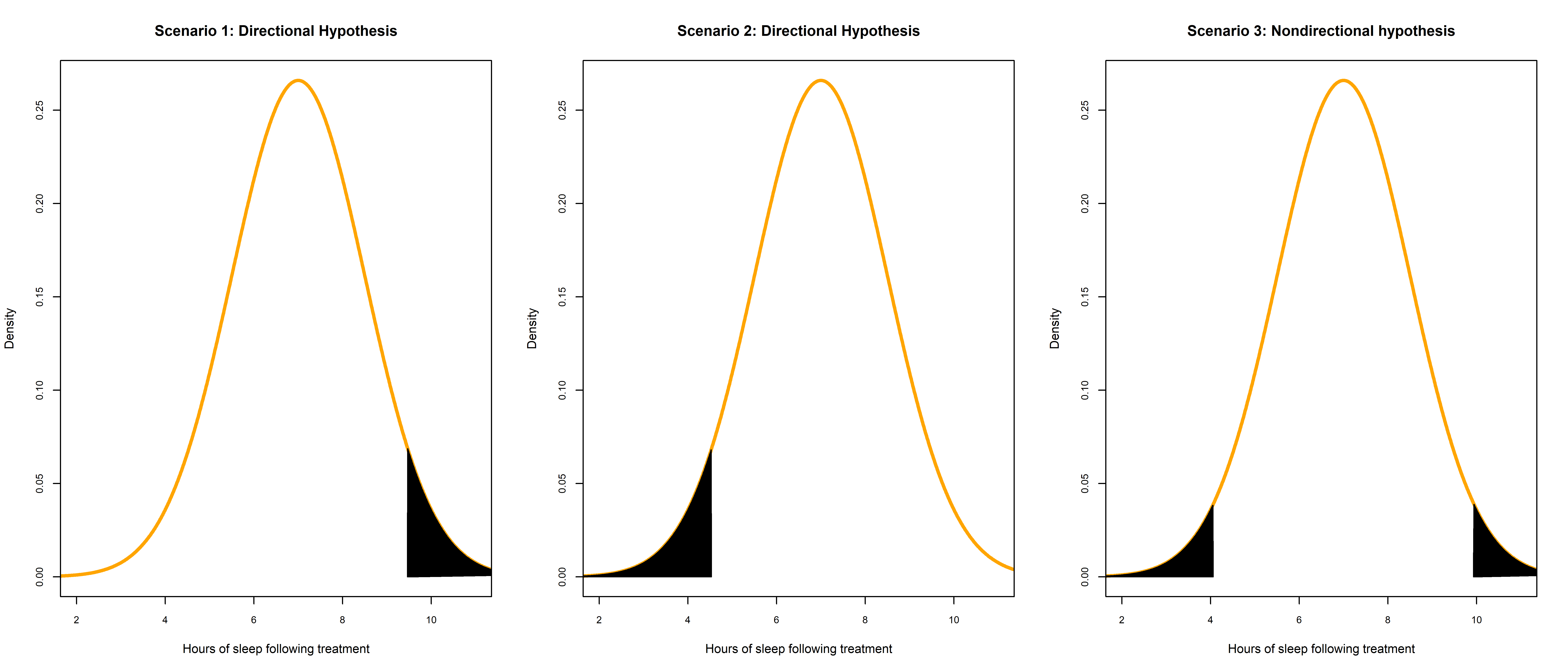- \(H_{1}\): mean hours of sleep is higher for insomnia patients receiving light therapy versus those receiving relaxation therapy (directional hypothesis)